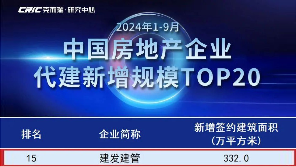 建發(fā)建管入圍2024年前三季度克而瑞中國房地產(chǎn)雙榜單