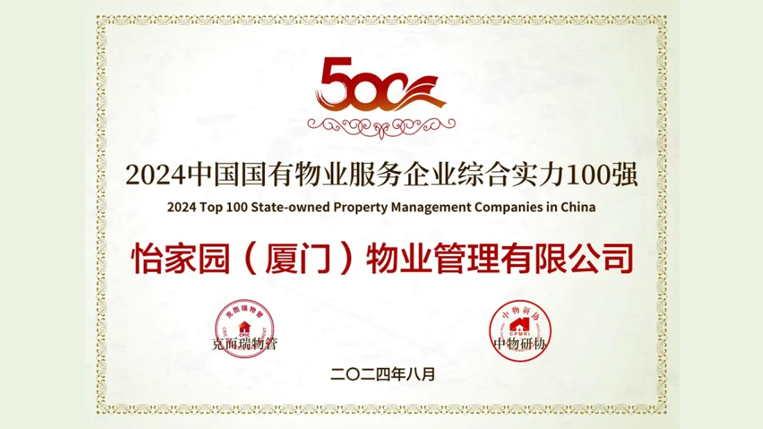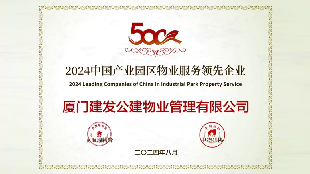 8月22日,2024中國物業(yè)服務(wù)企業(yè)綜合實(shí)力研究成果發(fā)布會(huì)在上海舉辦。建發(fā)物業(yè)旗下怡家園(廈門)物業(yè)管理有限公司榮獲“2024中國物業(yè)服務(wù)企業(yè)綜合實(shí)力20強(qiáng)第17名”及“2024中國國有物業(yè)服務(wù)企業(yè)綜合實(shí)力100強(qiáng)”;廈門建發(fā)公建物業(yè)管理有限公司榮獲“2024中國產(chǎn)業(yè)園區(qū)物業(yè)服務(wù)領(lǐng)先企業(yè)”。