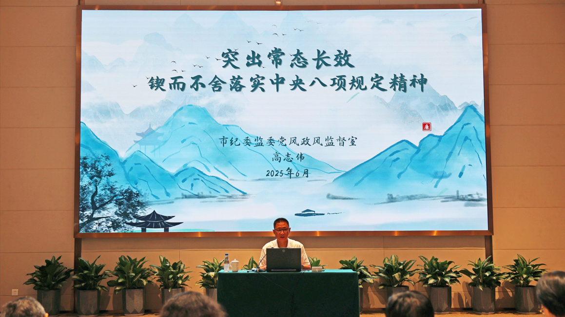 廈門市紀委黨風政風監(jiān)督室高志偉主任以《突出常態(tài)長效 鍥而不舍落實中央八項規(guī)定精神》為主題,系統(tǒng)闡述了習近平總書記關(guān)于落實中央八項規(guī)定精神的一系列重要論述,并結(jié)合各類案例剖析“四風”問題特別是隱形變異問題的表現(xiàn)形式及其危害,幫助參訓(xùn)人員進一步加深對中央八項規(guī)定精神的認識和理解,增強貫徹落實中央八項規(guī)定精神的自覺性和堅定性。高志偉主任同時從強化主體責任、強化紀律教育、強化制度執(zhí)行、強化嚴管厚愛等方面對公司加強作風建設(shè)提出指導(dǎo)意見。