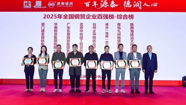 近日,2026鋼鐵市場展望暨“我的鋼鐵”年會于上海舉行,在同期舉辦的“2026大宗商品頒獎慶典”上,建發(fā)股份(600153.SH)鋼鐵集團(tuán)連續(xù)三年登榜,榮獲2025年全國鋼貿(mào)企業(yè)百強(qiáng)榜“綜合榜第一位”,旗下建發(fā)金屬獲評“金屬板材榜第一位”。