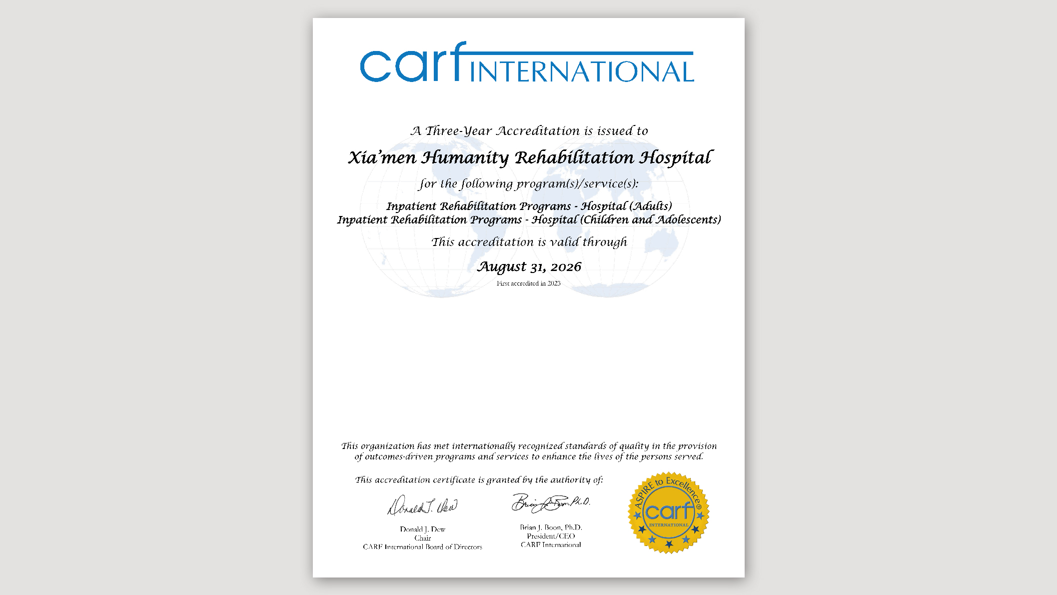 廈門弘愛康復(fù)醫(yī)院獲得CARF綜合住院項目三年期國際康復(fù)認(rèn)證