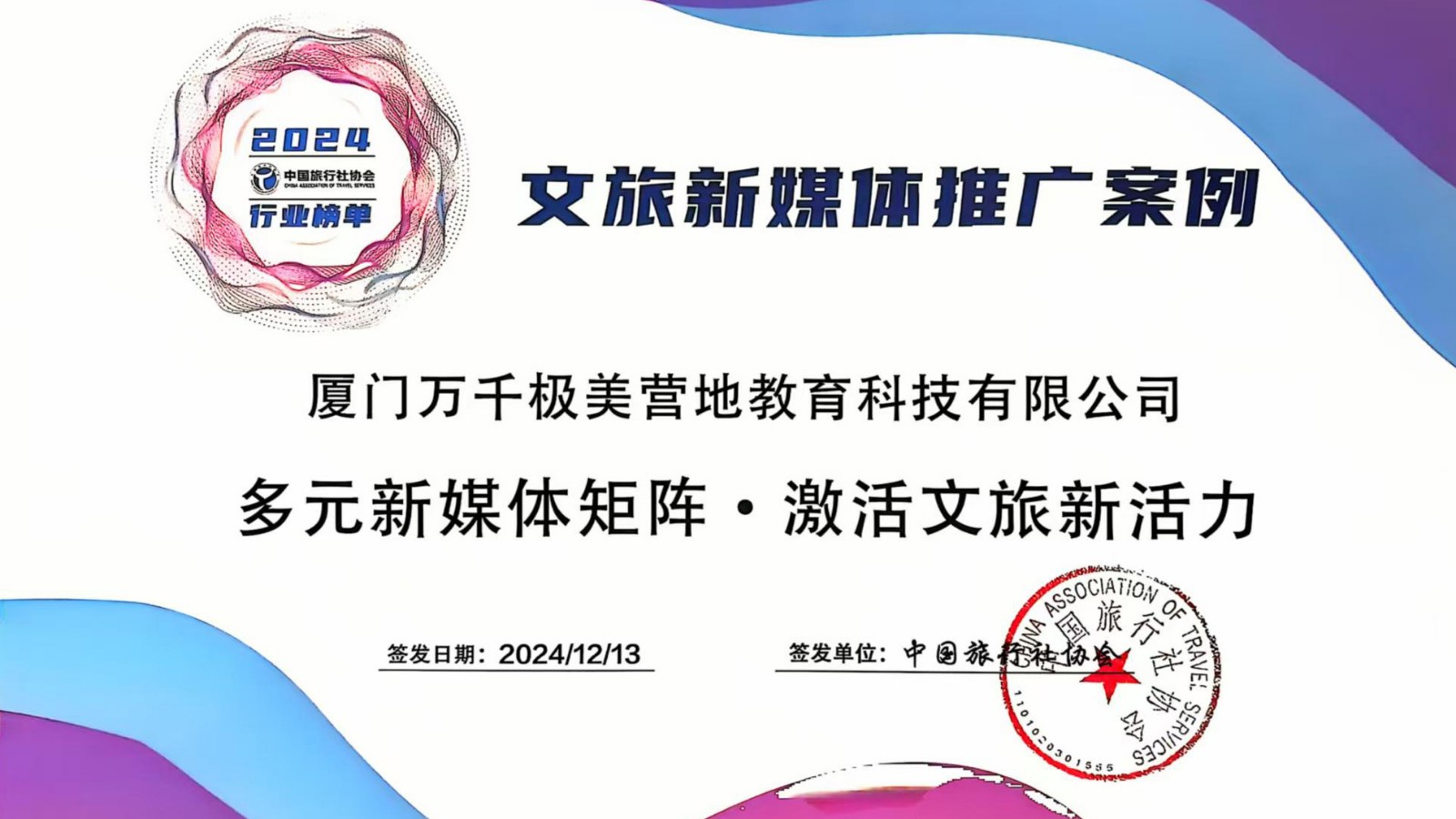 建發(fā)國旅集團獲第七屆中國旅行社協(xié)會行業(yè)榜單多個獎項