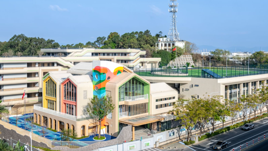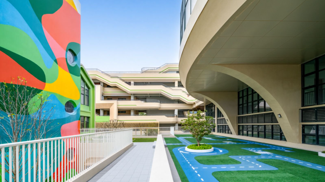 建設(shè)過程中,項(xiàng)目團(tuán)隊(duì)創(chuàng)新采用“垂直生長(zhǎng)、功能疊加”的“3D校園”模式,實(shí)現(xiàn)土地高效利用。校園空間依山就勢(shì),通過建筑扭轉(zhuǎn)與運(yùn)動(dòng)場(chǎng)架空的設(shè)計(jì)手法,將空中跑道、屋頂花園、觀景平臺(tái)串聯(lián),打造與自然融為一體的現(xiàn)代化校園。
